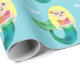 Personalisierte Imitat-Folien-blondes Meerjungfrau-Verpackungs-Papier. Entzückende Blondine, beleuchten enthäutete Meerjungfrau mit Imitatfolien-Rosaspitze und dem grünen Schwanz. Rosa Imitat vereitelt Seashell in ihrem Haar. Spaß für Duschengeschenke eines der Meerjungfrau themed Party oder der Meerjungfrau. Der Hintergrund ist helles Ozeanblau. Personifizieren Sie mit Namen, redigieren Sie, um Schriftartfarben und -arten zu ändern. Koordinierenmeerjungfrau, Merman und Piraten-Partyversorgungen. Kontakt für Anträge des kundenspezifischen Auftrages. Meerjungfrau, themenorientierte Entwürfe des Lebens des Ozeans, Meer. ww.SamAnnDesigns.com