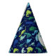 Kinderpersonalisierte Dinosaurier-Geburtstags-Party-Muster-Papier-Hüte. Niedlicher Dinosaurier im Watercolor mit einem Hintergrund der Dinosaurier auf Blau. ALLES GUTE ZUM GEBURTSTAG und Name geschrieben in gebogenen Schriftart. www.SamAnnDesigns.com