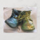 Kinderschuhe auf Postkarten, die für Einladungen zu einer Babydusche oder zum Geburtstag gut geeignet sind.