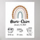 Niedliches boho Kinderzimmer Dekor Poster mit Geburtsstatistiken und einem Aquarellbogen. Einzigartige Geschenkidee für Neugeborene.