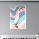 Dieses stilvolle Entenposter in trendigen Rosa- und Blautönen sorgt für sanfte Farbwellen und strahlt für Schlafzimmer, Kinderzimmer oder Kinderzimmer. Das große Portrait der weißen Läufer-Ente ist in einem Art-Cutout-Stil für die moderne Dekoration mit einer spielerischen Seite.