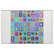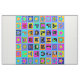 Alphabet Play Mat, Alphabet Quilt, 56x56, Rot-Blau, Gelb-Rosa-Türkis, Pastellfarben, Orangenlima, Alphabet-Quilt, zeitgenössisches Quilt, zeitgenössische Alphabet-Symbole, Virginia Vivier, Vagabond Folk Art, Südwestliche Volkskunst, Boho Dekor, Indie Indie Kunst.