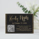 Mit zwei markanten Schriftart habe ich Grafiken für die Stücke dieser Kollektion erstellt und sie mit einem Imitat-Metallic-Goldschall-Effekt für ein festliches Ambiente verziert. In diesem Stück wurde ein skurriler, handgeschriebener Schriftart benutzt, um "Kindly" darzustellen, und der aufwändige, formale lautet "Antwort". Der gesamte Text wurde in einem schwarzen Rechteck platziert, das einen schwarzen Hintergrund überlagert. Gold Confetti und ein subtiler schwarzer Ober-Overlay ergänzen den Grenzeffekt. Mit den Vorlagenfeldern können Sie eigene Daten zum Routen des QR-Codes hinzufügen und zusätzliche, benutzerdefinierte Informationen für Ihre Gäste einschließen. Und Sie können den Hintergrund in eine beliebige Farbe ändern. // 130 + 131 //