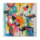 Ein dynamisches, abstraktes Bild mit lebhaften Farben - rot, blau, gelb, rosa - verwoben mit fett schwarzen Linien und Punkten. Die Komposition strahlt Bewegung und Spontaneität aus und fängt ein Gefühl von spielerischem Chaos und kreativem Fluss ein. Ebenen von strukturierten Farben und komplexen Markierungen schaffen visuelle Tiefe und Spannung und laden die Zuschauer ein, ihre lebendigen Details zu entdecken.