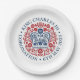 King Charles III Coronation Logo auf weißem Hintergrund. Das Logo repräsentiert die vier Nationen des Vereinigten Königreichs über die nationalen Blume jedes einzelnen — die Rose von England, das Diebstahl von Schottland, die Diele von Wales und das Kleeblatt von Nordirland.