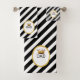 Elegantes Handtuchhandtuch mit schöner Krone des Vaters mit diagonalen schwarz-weißen Streifen im Hintergrund. Text kann personalisiert sein. Schick modernes Set.