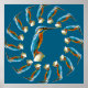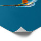 Eine bezaubernde Darstellung eines Kreises wunderschöner Kingfisher-Vögel, mit herrlichem Orange-, Blau- und Weißabwurf, Set vor tiefblauem Hintergrund.