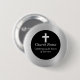 Elegantes 25-jähriges Kirchenjubiläum: Feiern Sie mit diesen wunderschönen Buttonen aus Schwarz und Silber - einem Christlichen Metallkreuz und Hintergrund.