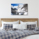 Kirche im Schnee mit den Alpen Leinwanddruck
