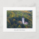 Postkarte einer von Bäumen umgebenen Kirche in Herbstfarben auf den Hügeln um den Bled Lake in Slowenien im Herbst mit weißer Grenze und dem Text: "Slowenien".