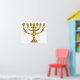 Eine Kirche menorah in Gold mit vielen Kerzen. Dieses Design sieht auf diesem Poster wirklich effektiv aus
