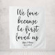 Wir Liebe, weil er uns zum ersten Mal liebte kirchliche Hochzeitskulissen Bannerdekorationen mit Braut- und Bräutigam-Namen und das Datum. Design in Schwarzweiß mit religiösen Redewendungen. Auch ideal für Hochzeitsfeiern, Zeremonie, als Gang Dekoration, Hochzeitstisch Dekoration, Polterabend, und vieles mehr. Verwenden Sie sie, um sie an einer Wand, einem Bogen oder einem Fotoständer aufzuhängen.
