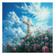 Christliches Kreuz & Rose auf dem Heiligen Geistposter des Hügels. Bemerkenswertes religiöses Plakat ist die perfekte Einrichtung für jeden Christlichen Zuhause oder Kirchenhaus. Das Bild strahlt Frieden, gibt Kraft und Hoffnung.