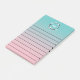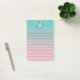 Gezeichneter Post-Itnotizblock mit einem Monogramm innerhalb eines Kirschblüten-Kranzes auf Rosa und Türkis ombre.