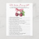 Laden Sie Ihre Gäste mit diesen Aquarellkirschen ein. Kirsche mit Blätter und rotem Bandbogen. Sie ist die Kirsche oben.