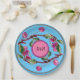Kirschen Pink Frucht auf Türkis mit Initials Pap Pappteller