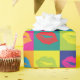 Fun Kiss Pop-Art Stil farbenfrohe Muster Umschlagpapier. Farbenfrohe Quadrate mit bunten Küssen.