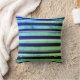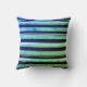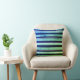 Elegantes Kissen mit dicken und dünnen, blauen und weißen Streifen.