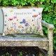 Aquarellbutterfliegen in einem Bereich von Wildblumen und Soft-Rücksendungen mit Ihrem optionalen Text. (Oder entfernen Sie es einfach). Dieses Kissen gibt einen süßen Sommer, fast wie man die warme Brise und fröhliche Sommerklänge spüren kann. Die Rückseite ist abgestuft Minze blaegreen die gleiche Farbe wie der Text, mit einem femininen Script-Schriftart und einige Schmetterlinge. Wenn Sie mit diesem Design in Liebe treten, können Sie es auch mit dem Transferwerkzeug auf andere Produkte übertragen - ideal für Patio Produkte. Sommer, Freizeit und fröhliche Momente.
