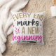 Weißes Kissen mit Beschriftung Jedes Ende markiert einen Neubeginn in schwarz, gold und rosa.