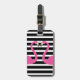 Dieses tropische Gepäckanhänger ist mit einem fuchsienküssen Flamingos auf einem schwarz-weiß gestreiften Hintergrund auf der Vorderseite geschmückt, und all Ihre persönlichen Informationen auf der Rückseite, die es perfekt für Ihren nächsten Urlaub machen.