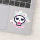 Autocollant de visage baisé avec un crâne ou une tête squelette avec des lèvres botox, des caries de yeux de coeur et des flores courtoises, personnalisées avec votre propre texte si désiré, parfait pour vos sacs, boisson, ride, doohickeys technologiques, travail et fournitures scolaires.