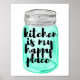 Aquarelle bocal en bleu turquoise avec guillemets de police de brush Kitchen est mon endroit heureux pour un joli décor artistique