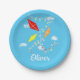 Kites in Sky Blue Boy Happy Geburtstag Party Paper Teller. Niedliches Design mit drei Drachen in den Farben Rot, Gelb und Orange. Die Drachen fliegen im blauen Himmel zwischen den Wolken. Fügen Sie Ihren Namen hinzu und machen Sie personalisierte Geburtstagsgeschenke Teller für die Geburtstagsfeier eines Jungen.