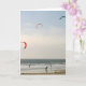 Surfen Sie mit bunten Drachen am Strand.