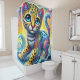 Dieser Duschvorhang hat ein niedliches Kätzchen darauf.