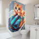 Dieser Duschvorhang hat ein niedliches Kätzchen darauf.