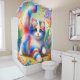 Dieser Duschvorhang hat eine kleine Kunst darauf.