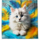 Dieser Duschvorhang hat ein niedliches Kätzchen auf dem Bild.