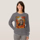 Dies ist ein Kitten Herbst Leaves T - Shirt. Der T - Shirt ist ein langärmeliger weiblicher T - Shirt. Das Design entstand mit generativer Kunst. Das Kunstwerk ist ein digitales Gemälde eines flauschigen Kätzchens mit lebendigen Herbstblättern. Das Kätzchen hat seine Augen weit offen und blickt nach oben. Sie können einen Namen mit der Schaltfläche Personalisieren hinzufügen.
