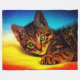Diese Fleecedecke hat ein Kätzchen darauf abgebildet.
