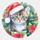 Kitten in der Weihnachtsmannmütze Weihnachtskunst Runder Aufkleber
