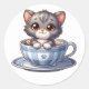 Niedlich Gray Kitten mit einem in einem blauen Teacup Stickers Stickers mit schönen braunen mit Augen Kitten Great fun Cat Stickers für alle Ihre Crafty Bedürfnisse.