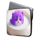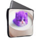 Dieser Laptop-Ärmel hat ein niedliches lila Kätzchen darauf.