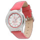 Une montre en acier inoxydable avec bracelet en cuir rouge ? Ça doit être une eWatchFactory ! Ajoutez vos images, textes et photos.