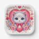Kitten mit Red Bow mit romantischen Blumenherzen Pappteller