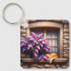 Dieser Schlüsselanhänger hat ein Kätzchen darauf abgebildet.