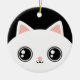 Conception bilatérale d'ornement d'impression avec un visage blanc mignon de chat de minou de kawaii avec de grands yeux brillants noirs d'un côté et minou noir de l'autre côté. Ainsi vous obtenez un blanc et un chat noir, deux chats sur un ornement. Si vous voulez le même minou des deux côtés veuillez me contactent.