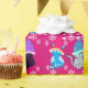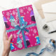 Diese Kitty Katze hat ein rosa Wickelpapier, das von der Künstlerin Amanda DeShane entworfen wurde.