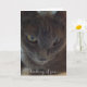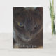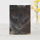 Carte de voeux avec un mignon chat gris qui dit "Penser à vous et espérer que vous allez bien bientôt."