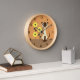 Stilisierte siamesische Katze sitzt mit gelben Blumen auf einer Uhr Gesicht mit Zahlen. Farben im Design können online mit wenigen Mausklicks angepasst werden
