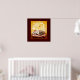 Ein niedliches kleines Kätzchen, das sich auf einem roten Kissen ausruht und von Goldfischen und Blasen über seinem Kopf träumt.