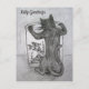 Word auf der Karte notieren "Kitty Greetings", aber können geändert werden, um Ihre eigene eigene Grußkarte Nachricht zu machen. Die Kunst zeigt eine Bleistiftskizze einer schwarzen Katze, die sich über eine Goldfischschale lehnt. Machen Sie Ihre eigenen, maßgeschneiderten Katzenliebhaber Geschenke mit personalisierten Nachrichten!