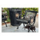 Kitty in The Park entlang der Seite eisernen Bank und Müll kann. Schwarze Katze. Schwarze, schmiedeeiserne und schwarze Katze. Von frontiernow.com