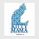 Kitty Mama sitzt Katze in Denim Blue Pattern Aufkleber