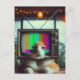 Kitty mit Vintagem Fernseher Postkarte